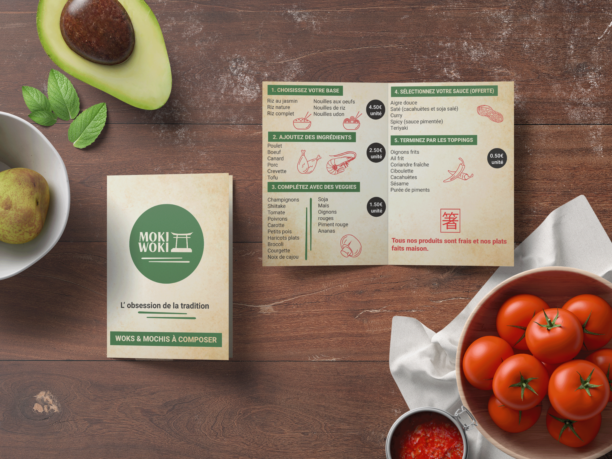 Création d'un restaurant de woks et mochis à emporter sur le thème du japon.